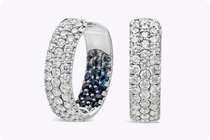 2.14 Carats Total Brilliant Round Cut Diamond & Blue Sapphire Huggie Hoop Earrings in White Gold