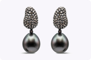 2.65 Carats Total Champagne Diamond and Tahitian Pearl Drop Earrings in Black Rhodium