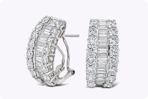 0.72 Carat Total Baguette & Round Cut Diamond Huggie Earrings in White Gold