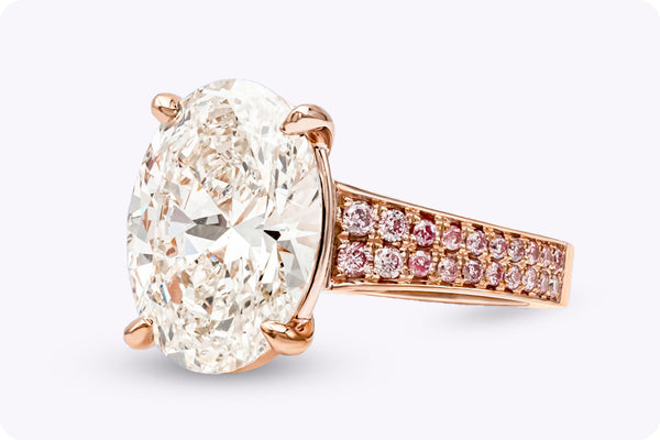 GIA Certified 5.04 Carats Oval Cut Diamond & Pink Side Stones Engagement Ring in Rose Gold