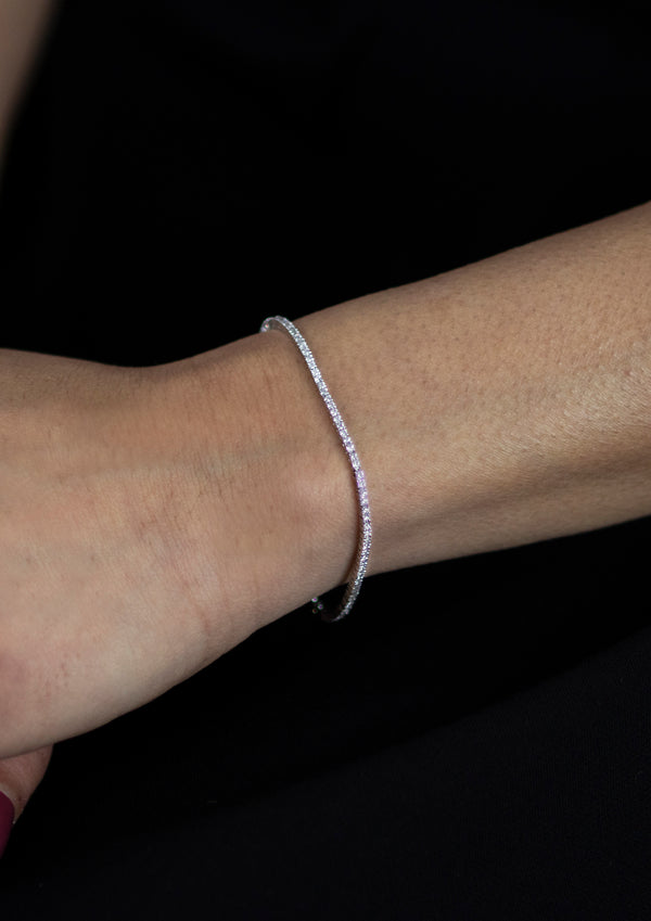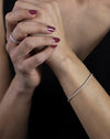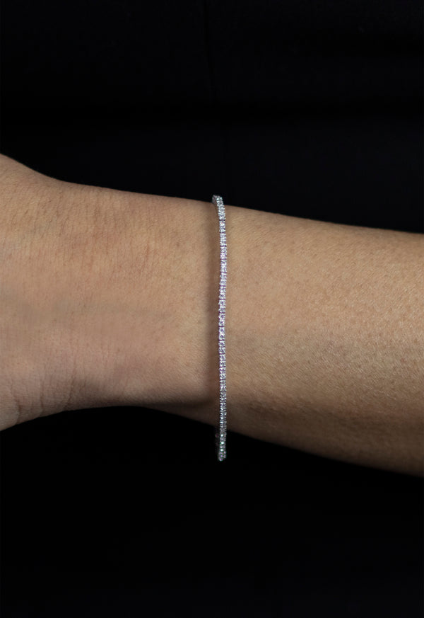 A classic and simple tennis bracelet showcasing a row of round brilliant diamonds, weighing 1.15 carats total. Made with 18K White Gold, 6.5 inches in Length.