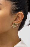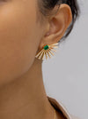 1.25 Carats Total Emerald Fashion Earrings with Round Diamonds in Yellow Gold