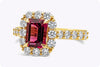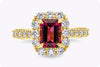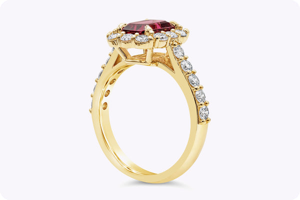 1.58 Carats Emerald Cut Rubellite with Diamond Halo Engagement Ring in Yellow Gold