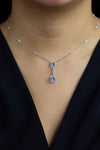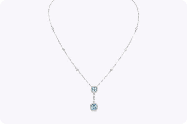 1.96 Carats Cushion Cut Aquamarine & Diamond Halo Necklace in White Gold