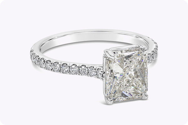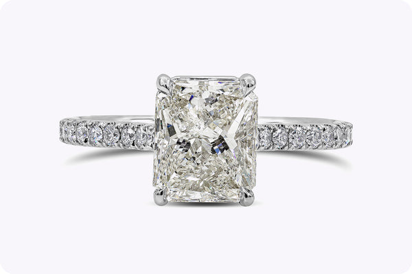 GIA Certified 2.01 Carat Radiant Cut Diamond Engagement Ring with Side Stones in Platinum