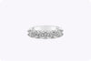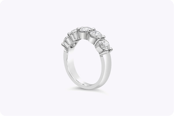 A classic wedding band style showcasing five round brilliant diamonds set in a shared prong. Diamonds weigh 2.02 carats total, E-F Color and SI in Clarity. Made with Platinum. Size 6 US.