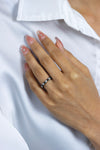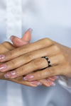 This unique ring is set with 11 round cut black diamonds weighing 1.08 carats that alternate with 11 round brilliant diamonds weighing 0.98 carats. Set in a shared-prong setting, Made with 18K Black Gold, Size 6.5 US resizable upon request.