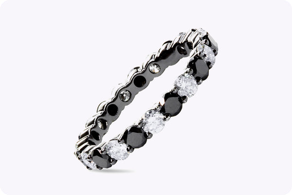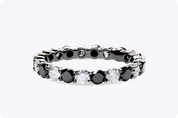 2.06 Carats Total Round Cut Alternating Black and White Diamond Eternity Wedding Band Ring in Black Gold