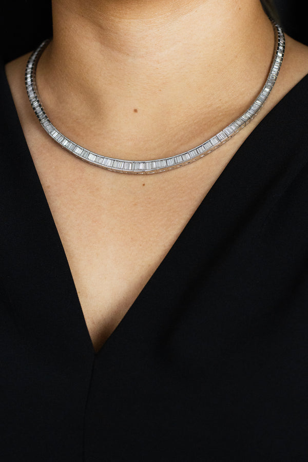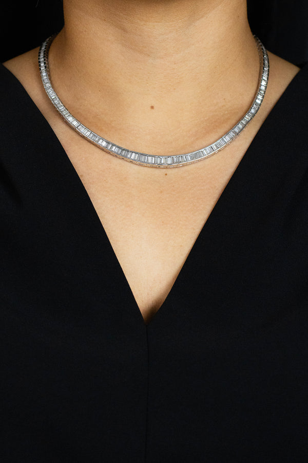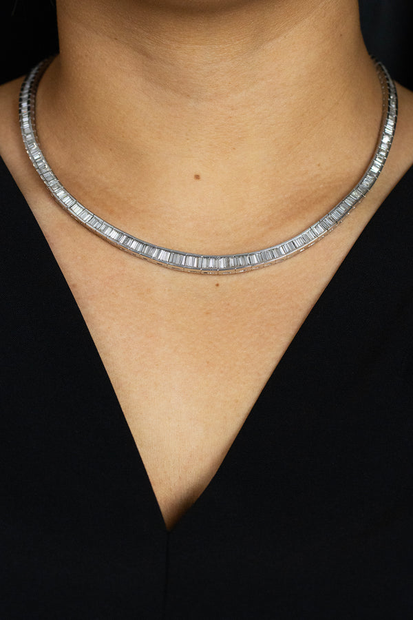21.15 Carats Total Baguette Cut Diamond Tennis Necklace in Platinum