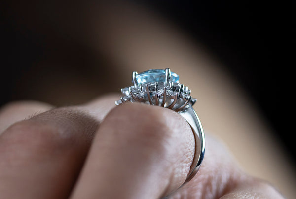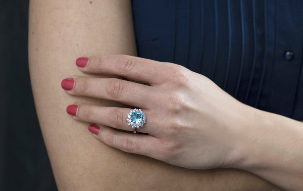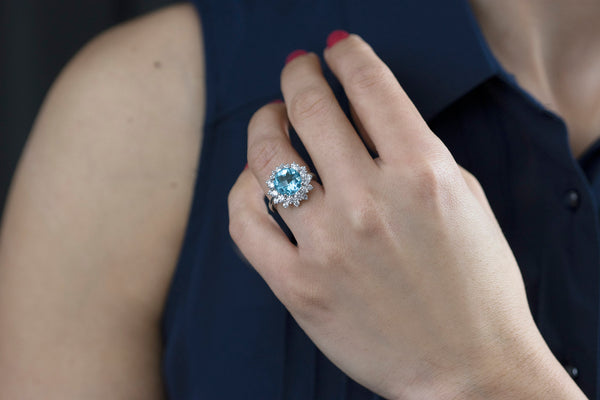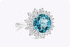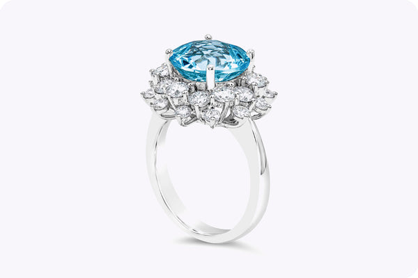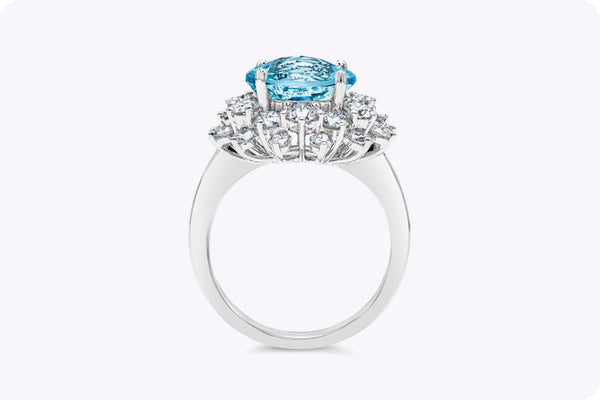 3.26 Carat Round Aquamarine and Diamond Flower Cocktail Ring in White Gold