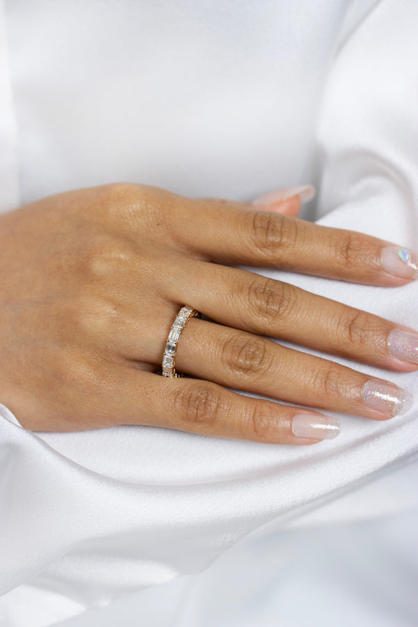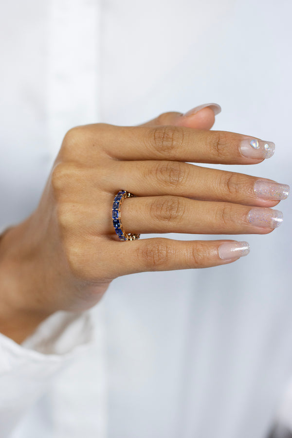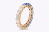 4.27 Carats Total Mixed Cut Half Blue Sapphire & Diamond Eternity Wedding Band in Yellow Gold