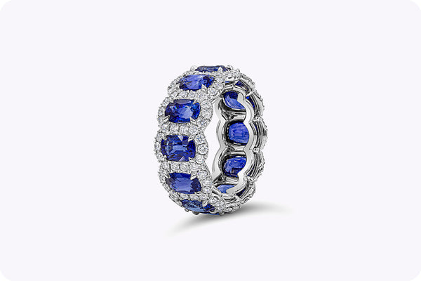 7.63 Carats Oval Cut Blue Sapphire and Diamond Halo Eternity Wedding Band in White Gold