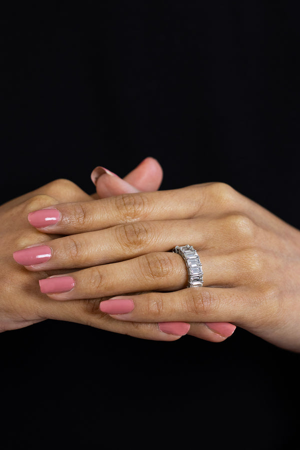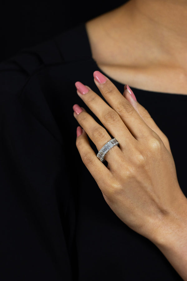 9.52 Carats Total Emerald Cut Diamond Eternity Wedding Band in Platinum